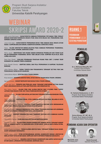 Skripsi Award adalah acara rutin yang diselenggarakan pada setiap semester oleh Program Studi Sarjana Arsitektur, Jurusan Arsitektur, Fakultas Teknik, Universitas Katolik Parahyangan untuk memberikan penghargaan kepada mahasiswa yang memperoleh nilai terbaik. Kegiatan Skripsi Award meliputi pameran poster skripsi, presentasi hasil skripsi dalam seminar terbuka untuk umum, dan pemberian penghargaan kepada makalah ilmiah terbaik yang telah melalui penilaian oleh para reviewer.